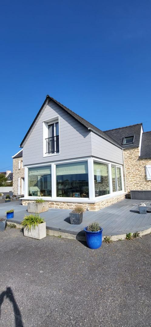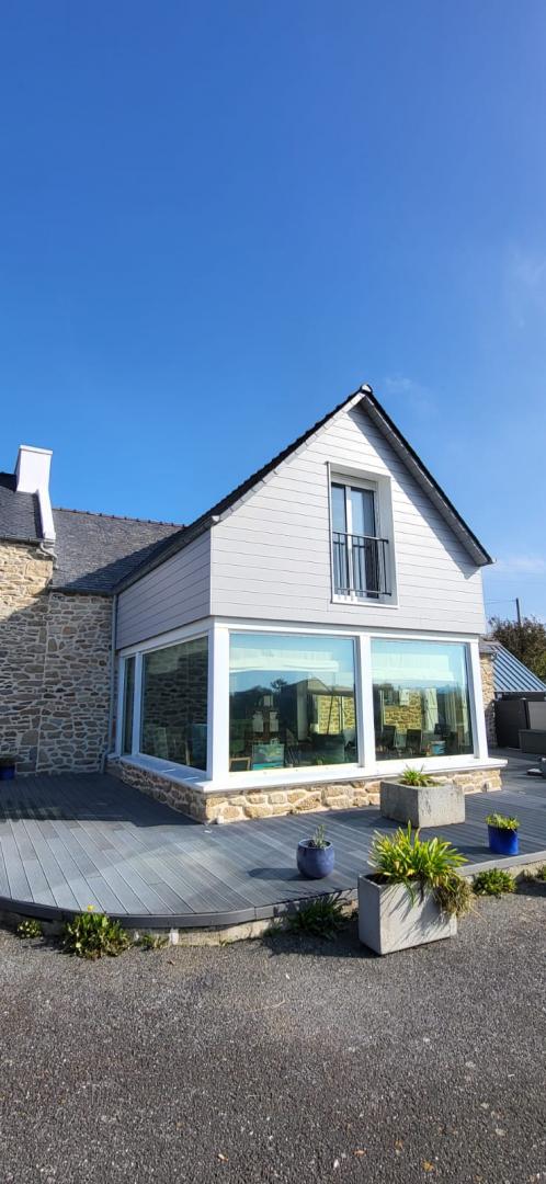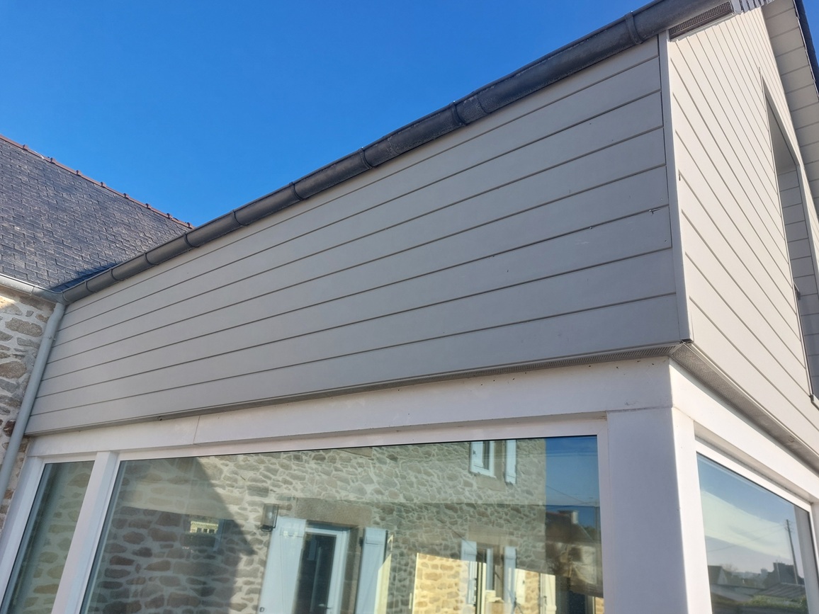 Remplacement d'un bardage werzalit en composite par du bardage cédral click C05 gris platine, finition smooth en fibres-ciment