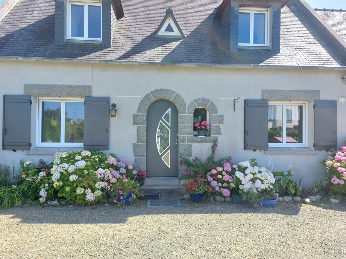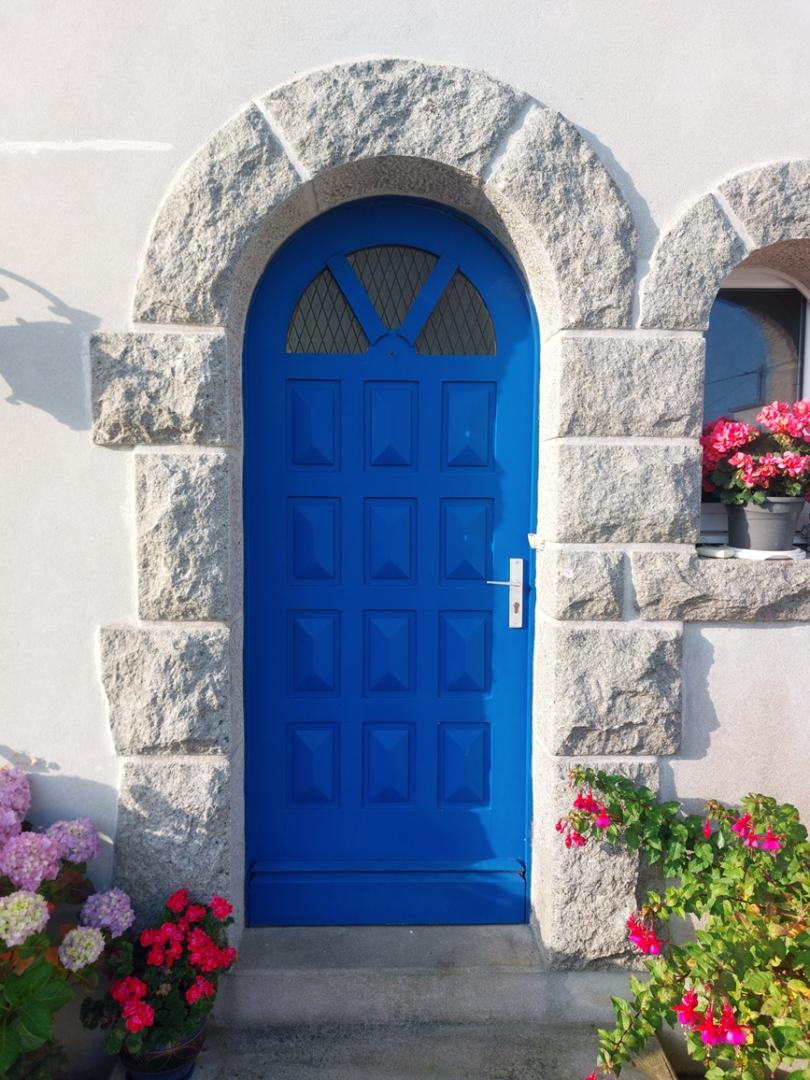 Porte en bois red cédar sur cadre inox à la bergerie au phare de l'île vierge