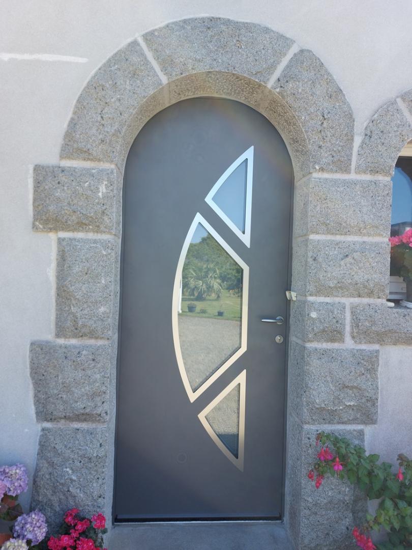 Remplacement d'une porte d'entrée aluminium vitrée par une porte en aluminium Vision UNIC MOTIF MER